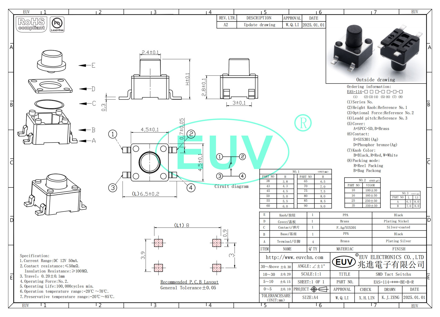4.5mmx4.5mm 四腳平貼 貼片輕觸開關(guān)