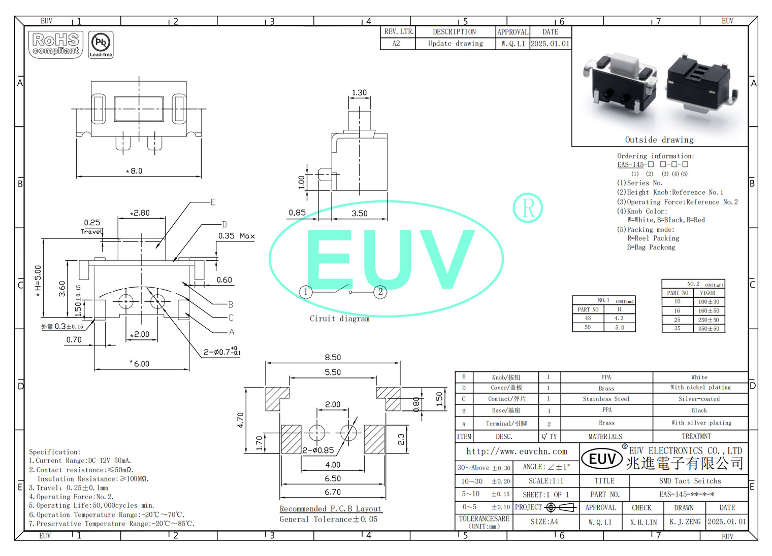 3.5mmx6.0mm 側(cè)按 4腳貼 貼片輕觸開關(guān)