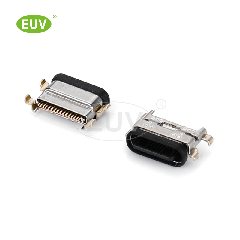16P 立式板上 帶雙壓片 高度10.5mm 全插 Type-C母座連接器